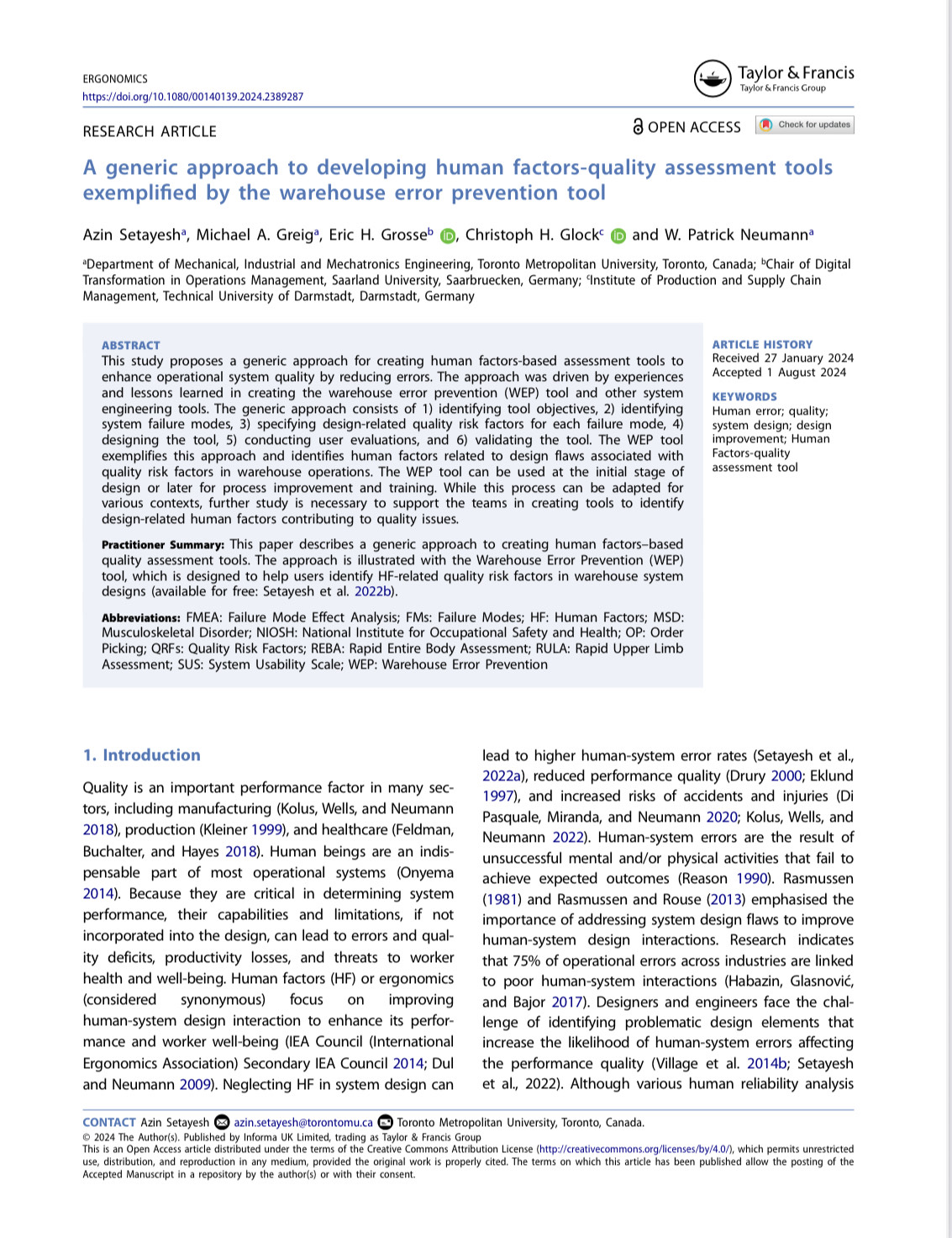 A generic approach to developing human factors-quality assessment tools exemplified by the warehouse error prevention tool