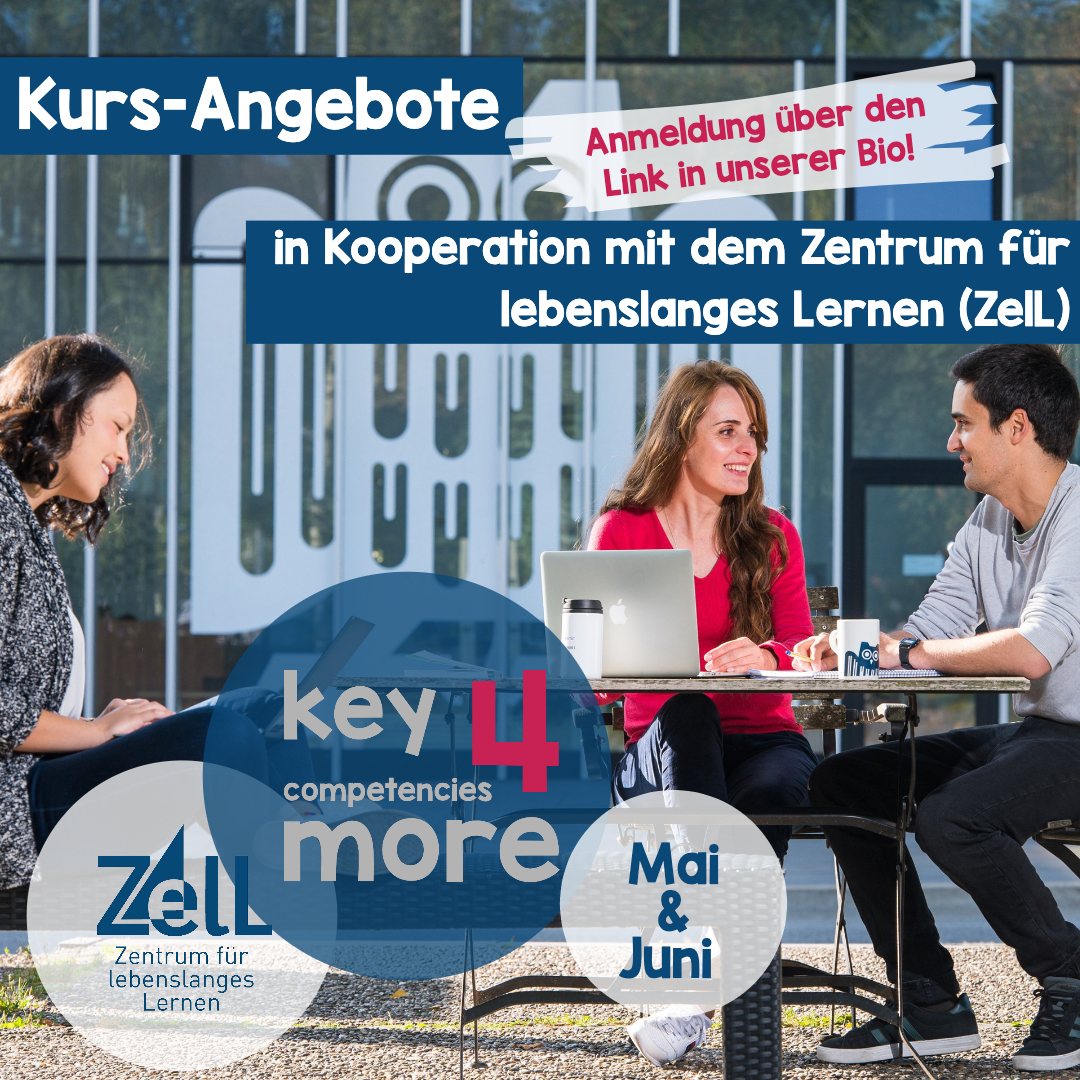 Melde dich gleich für unsere neuen Kurse in Kooperation mit dem Zentrum für lebenslanges Lernen an.