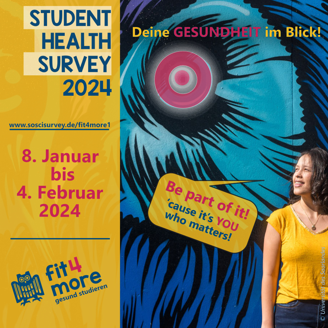 Vom 09.01. - 05.02. habt ihr wieder die Möglichkeit, uns zu sagen, wie es euch WIRKLICH geht! Macht mit bei unserem Student Health Survey 2023 und staubt coole Preise ab: