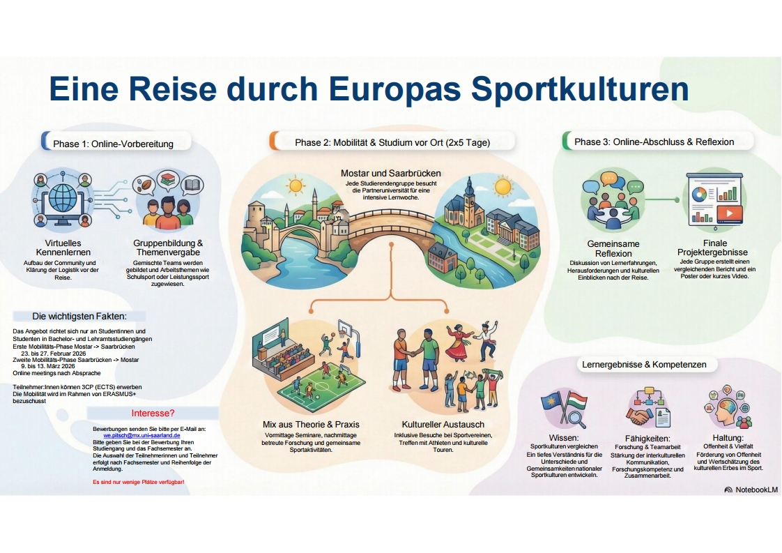 Während einer ersten Mobilitätsphase werden uns die Gäste aus Mostar vom 23. bis 27. Februar besuchen. Umgekehrt werden sich unsere Studentinnen und Studenten vom 9. bis 13. März an der Universität Mostar aufhalten. Nähere Informationen zu diesem Programm finden Sie hier.