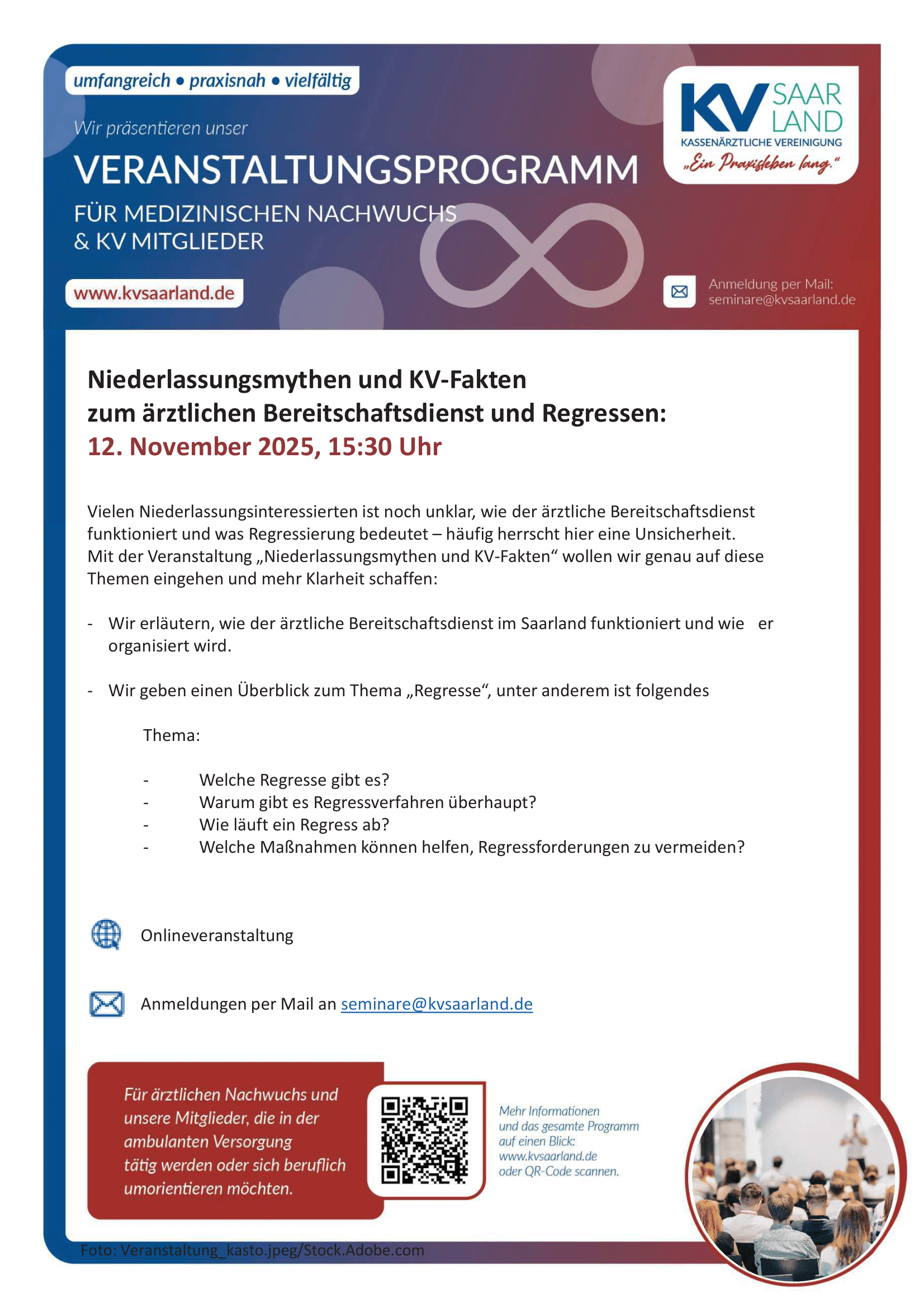 Online Veranstaltung. Anmeldungen per Mail an seminare(at)kvsaarland.de