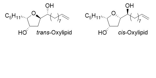 Chemical analysis of N. anomala collected off rock platforms along the southern coast of Australia yielded cis-Oxylipid, a cis-dihydroxytetrahydrofuran, whose the structure was assigned by spectroscopic analysis, chemical derivatization and biomimetic synthesis. Tetrahydrofurans from Notheia anomala are reported for the first time as potent and selective inhibitors of the larval development of parasitic nematodes.