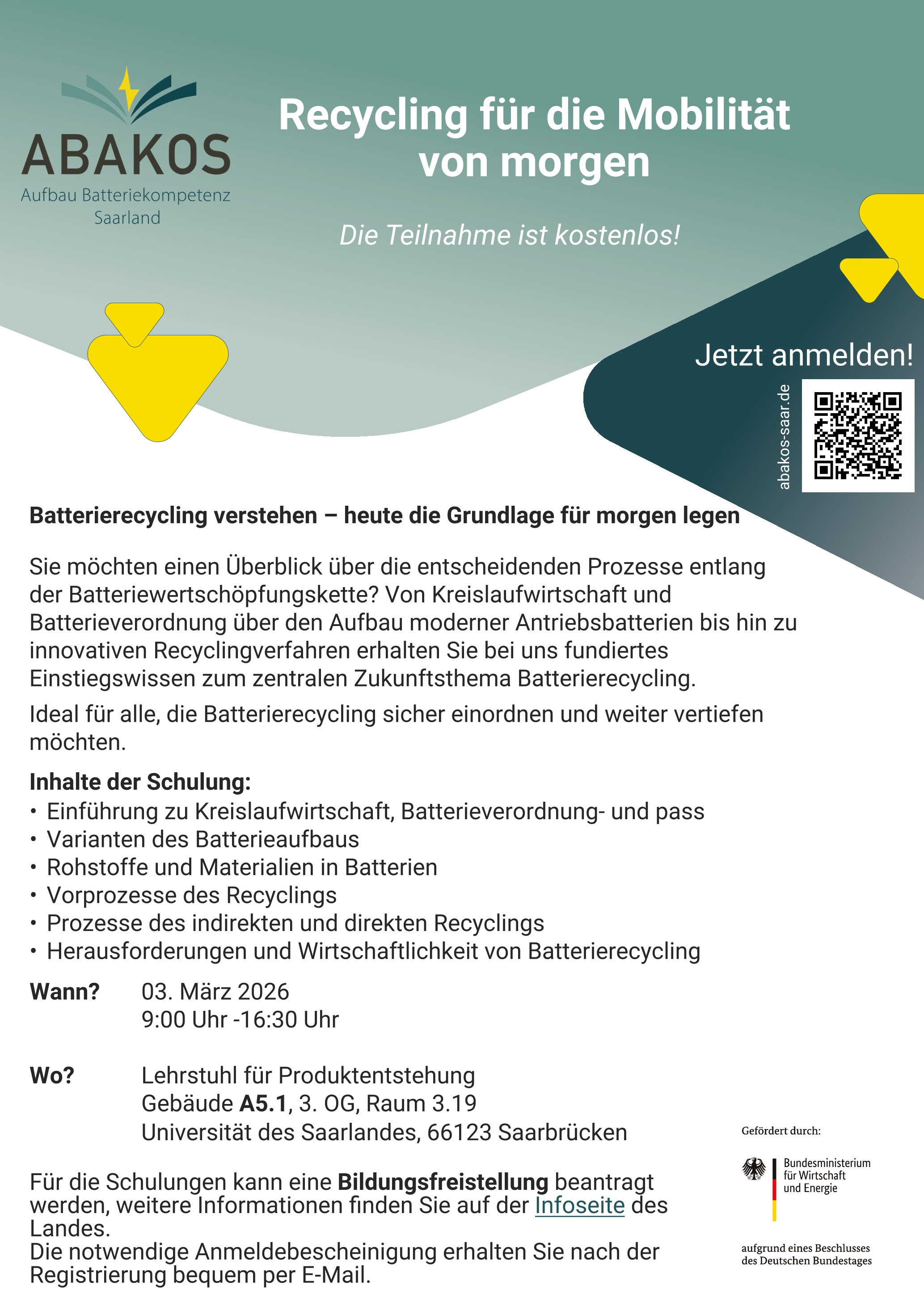 Mit unserem Projekt ABAKOS bieten wir unsere erste Schulung zum Thema Batterierecycling an!
