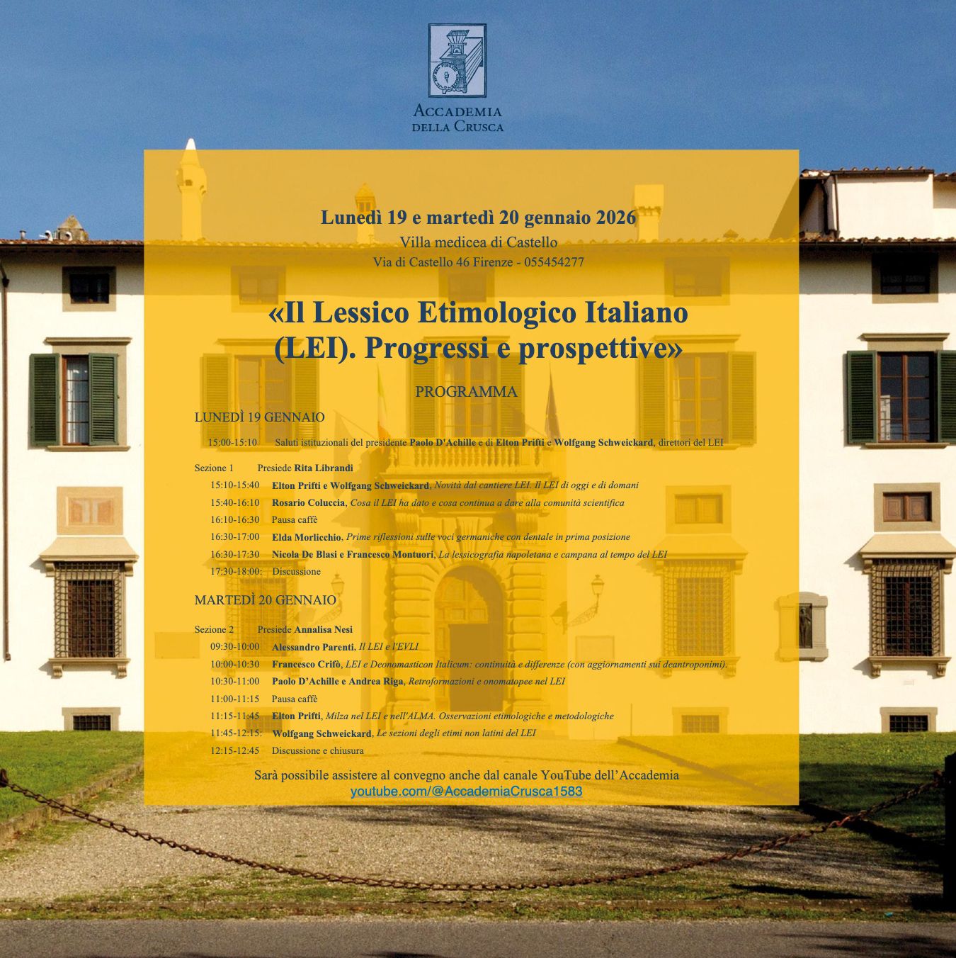 Das Lessico Etimologico Italiano (LEI) wurde von Prof. Dr. Dr. h.c. mult. Max Pfister (†) begründet und wird von Prof. Dr. Elton Prifti und Prof. Dr. Dr.es h.c. Wolfgang Schweickard geleitet. Es macht sich zur Aufgabe, den Wortschatz der Italoromania in einen gesamtromanischen Zusammenhang zu stellen. Ausgehend vom Etymon, wird die Sprachgeschichte jedes einzelnen Wortes unter Berücksichtigung sprachgeographischer und soziokultureller Zusammenhänge erforscht.